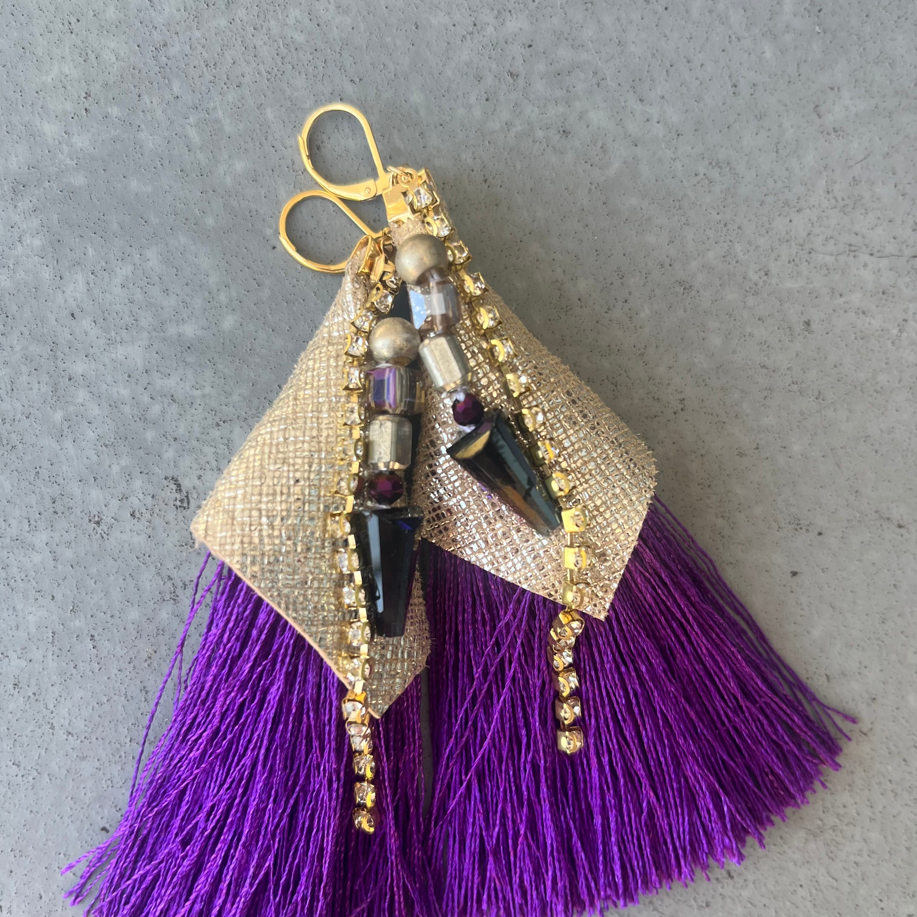 レザーの冠フリンジピアス(イヤリング) Silver×Purple
