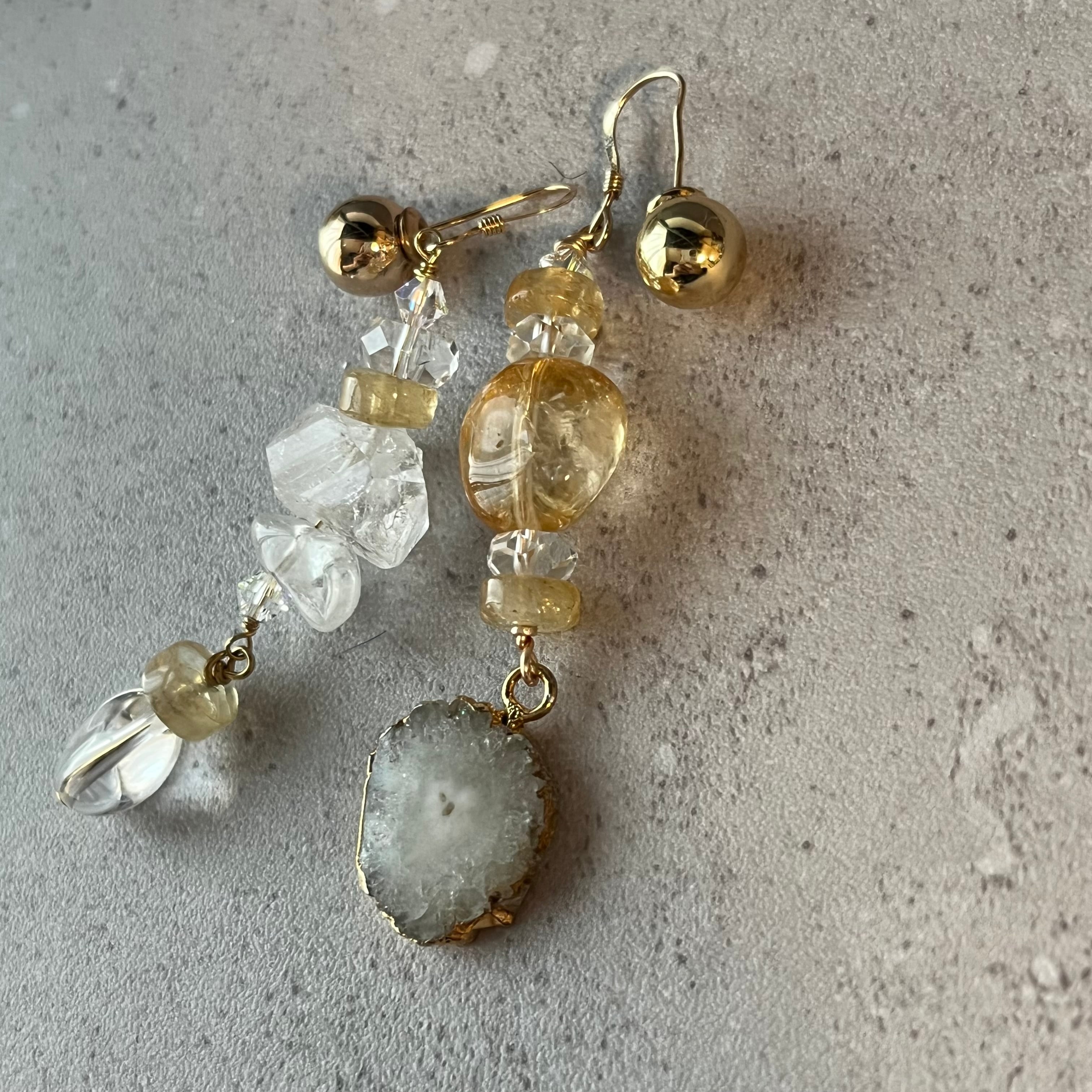 ソーラークォーツとシトリンとハーキマークォーツのピアス(イヤリング)