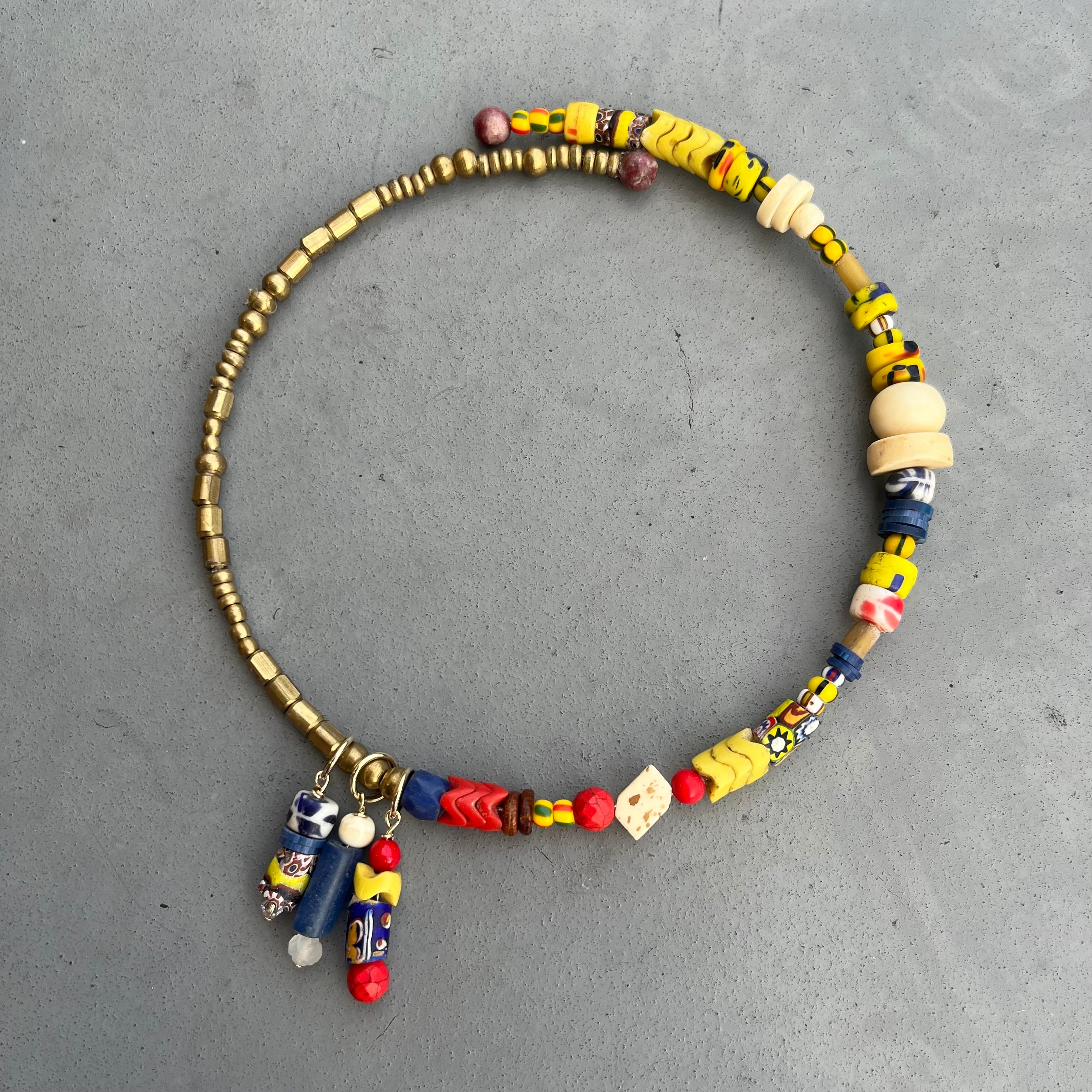 エキゾチックビーズとインド真鍮ビーズチョーカー( Yellow×Gold)