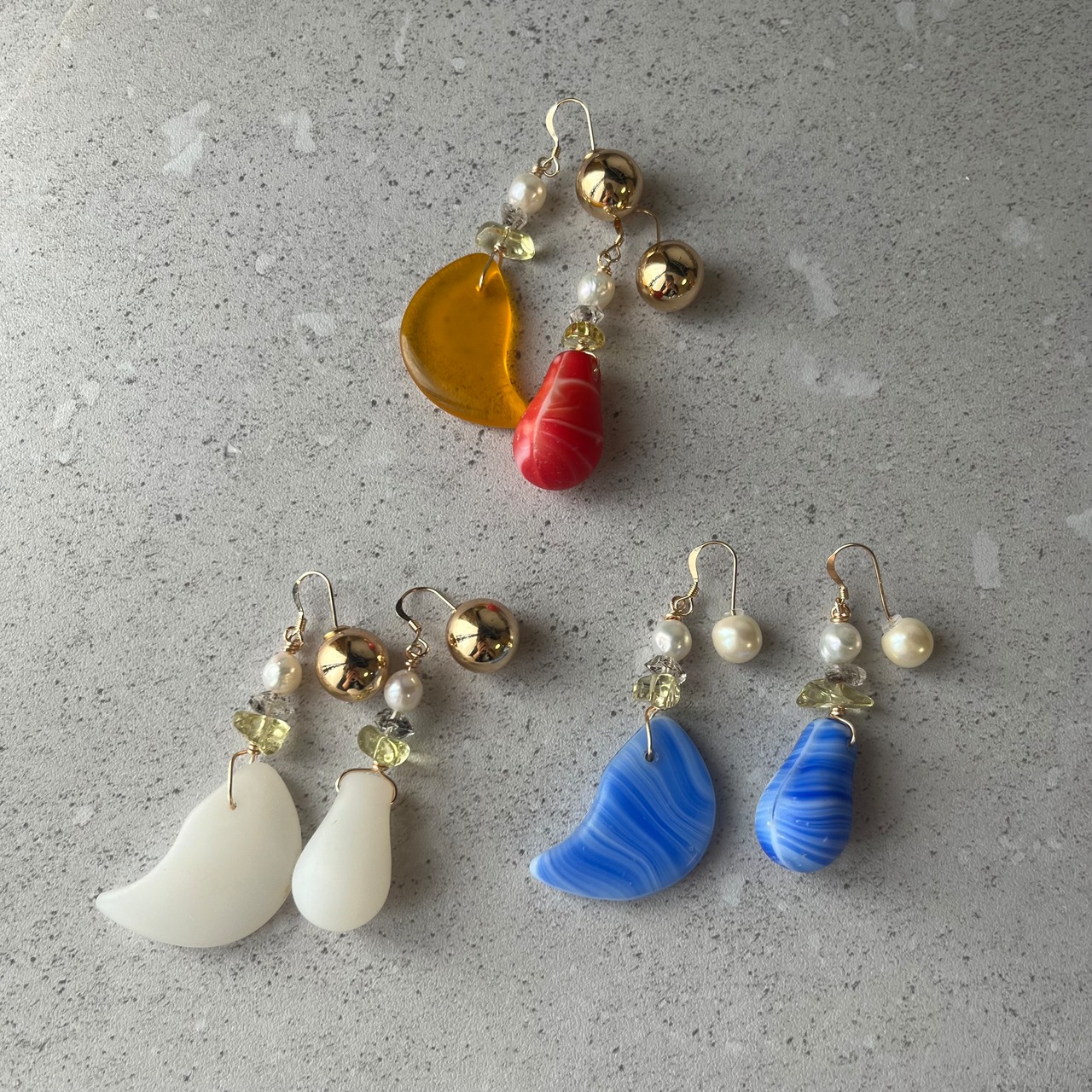 イヤリングの場合は、ネジバネ式の金具に、類似の丸いチャームついたデザインに変更。