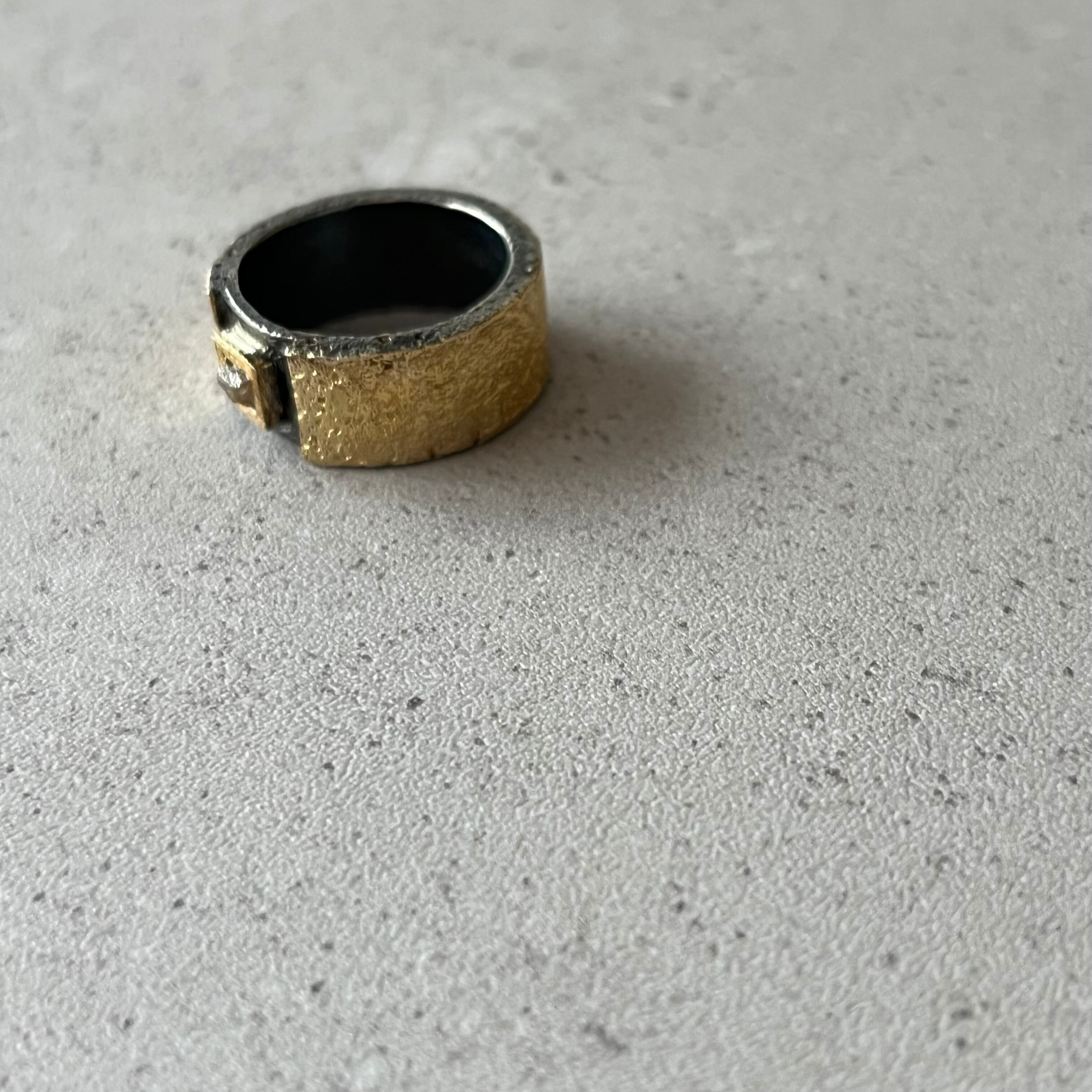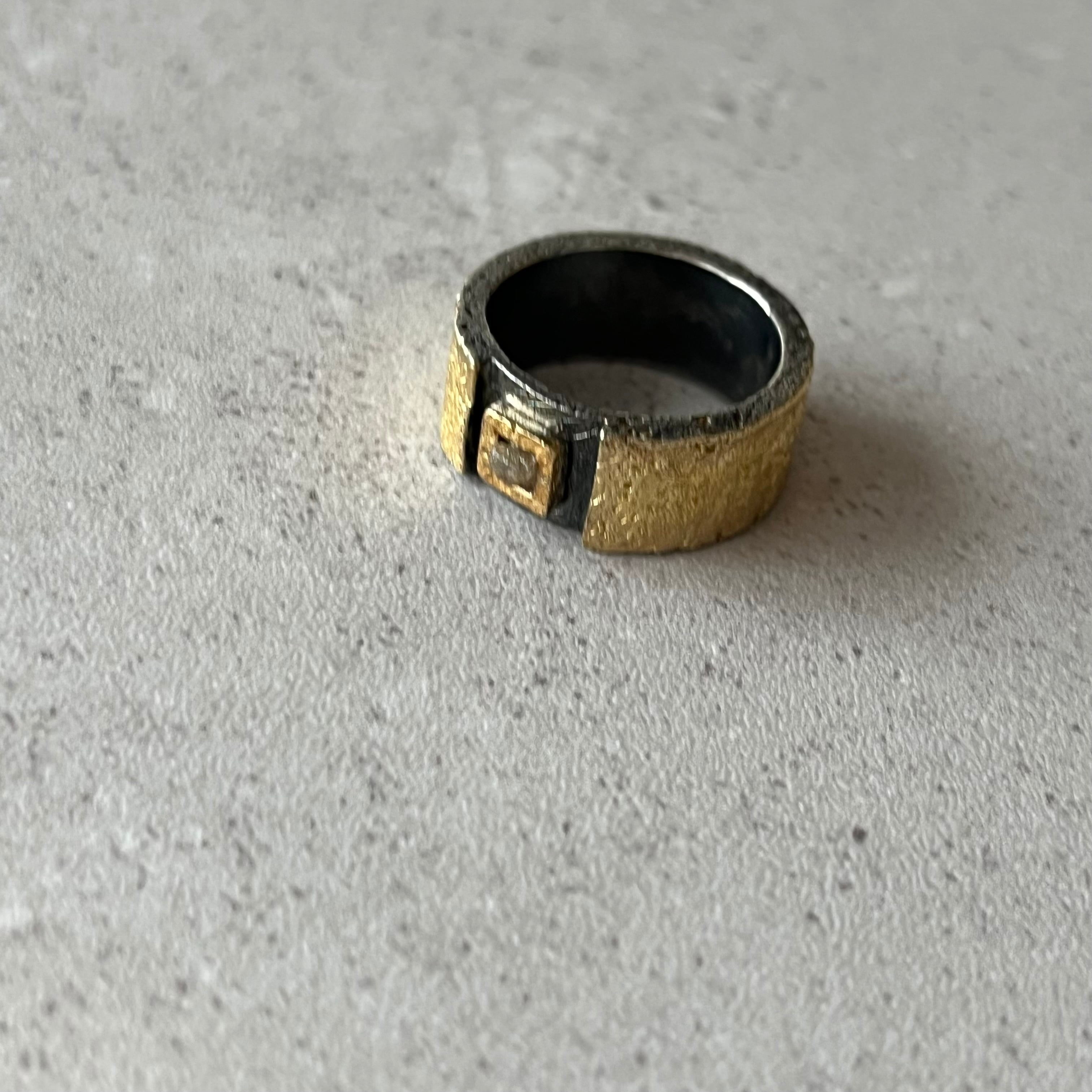 酸化加工を加えた渋みのあるsilver925に24金メッキのGoldを合わせた、無骨さの中に上品さを感じるメンズライクなデザイン。
