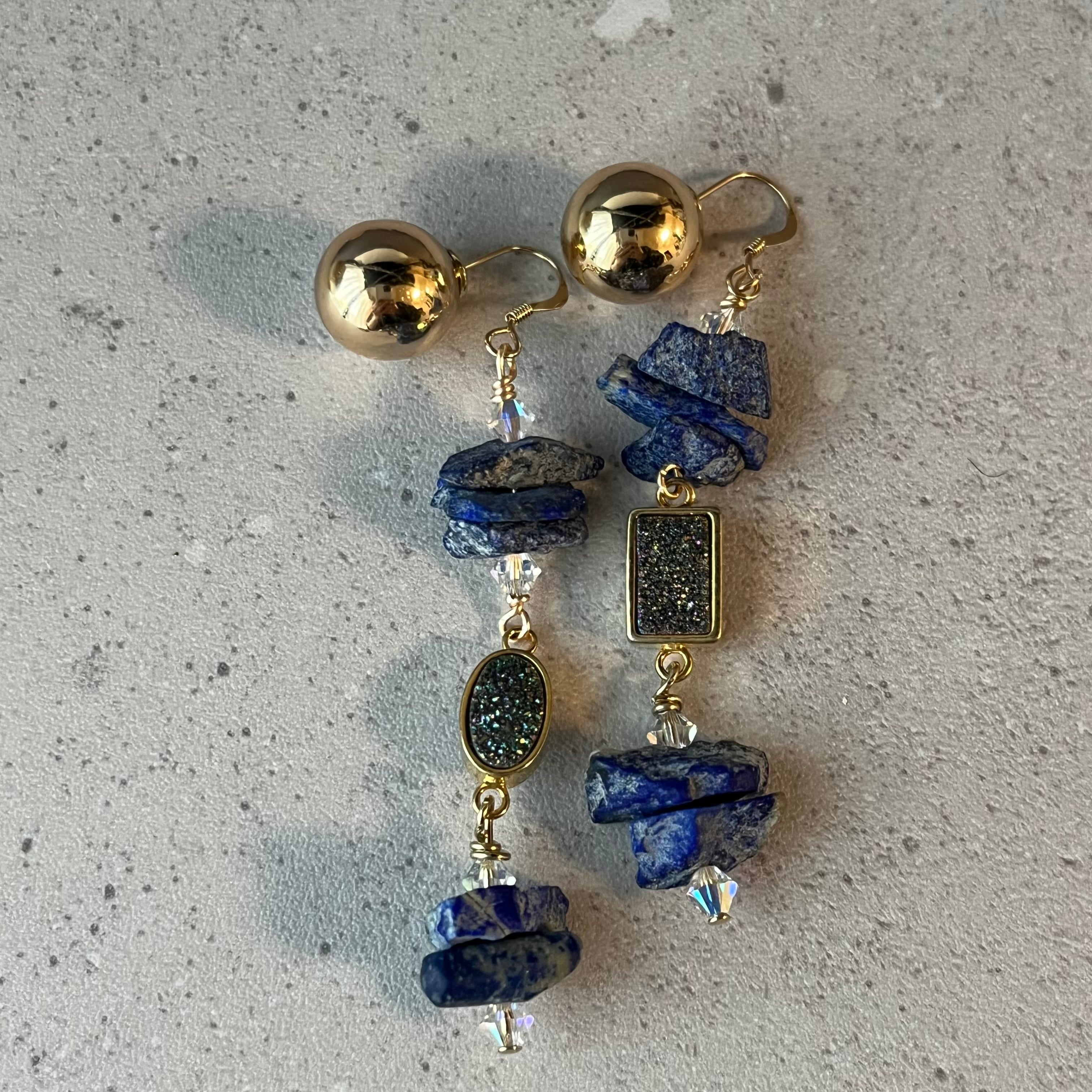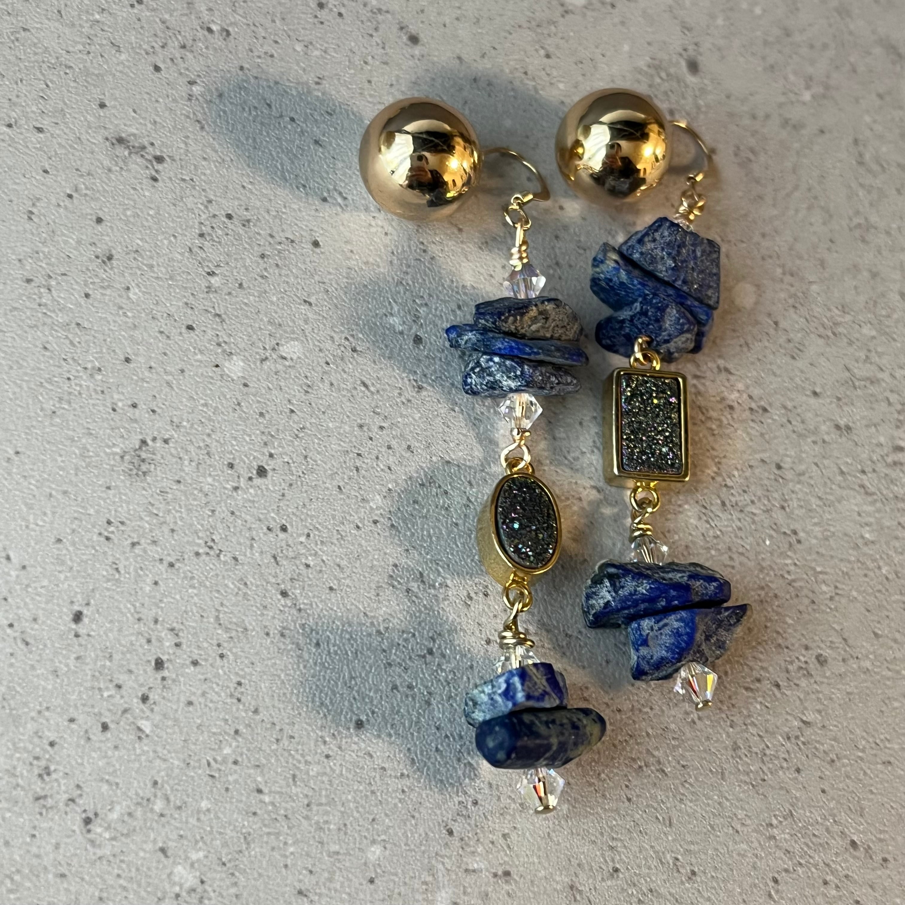 マットラピスラズリとドゥルージーのピアス(イヤリング)