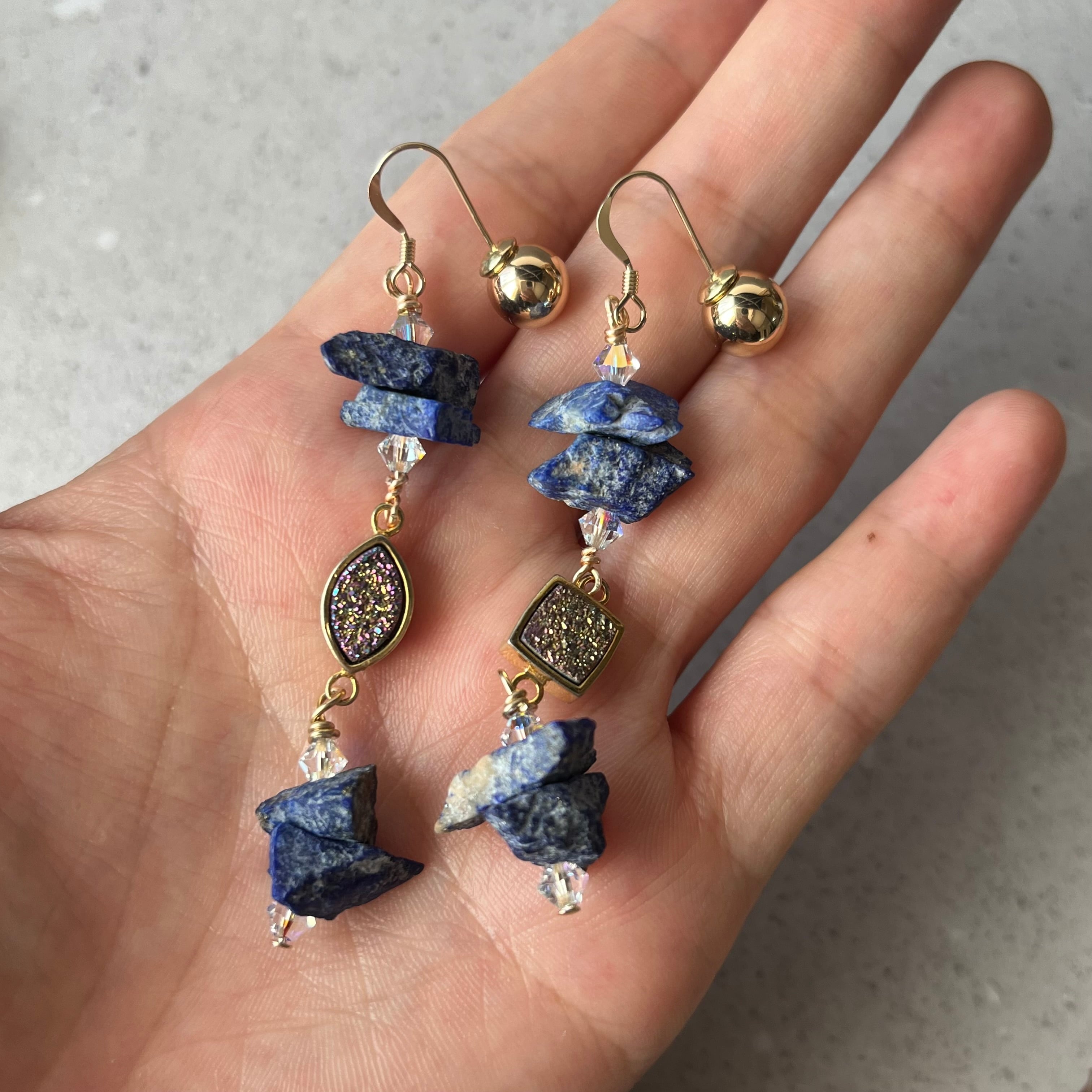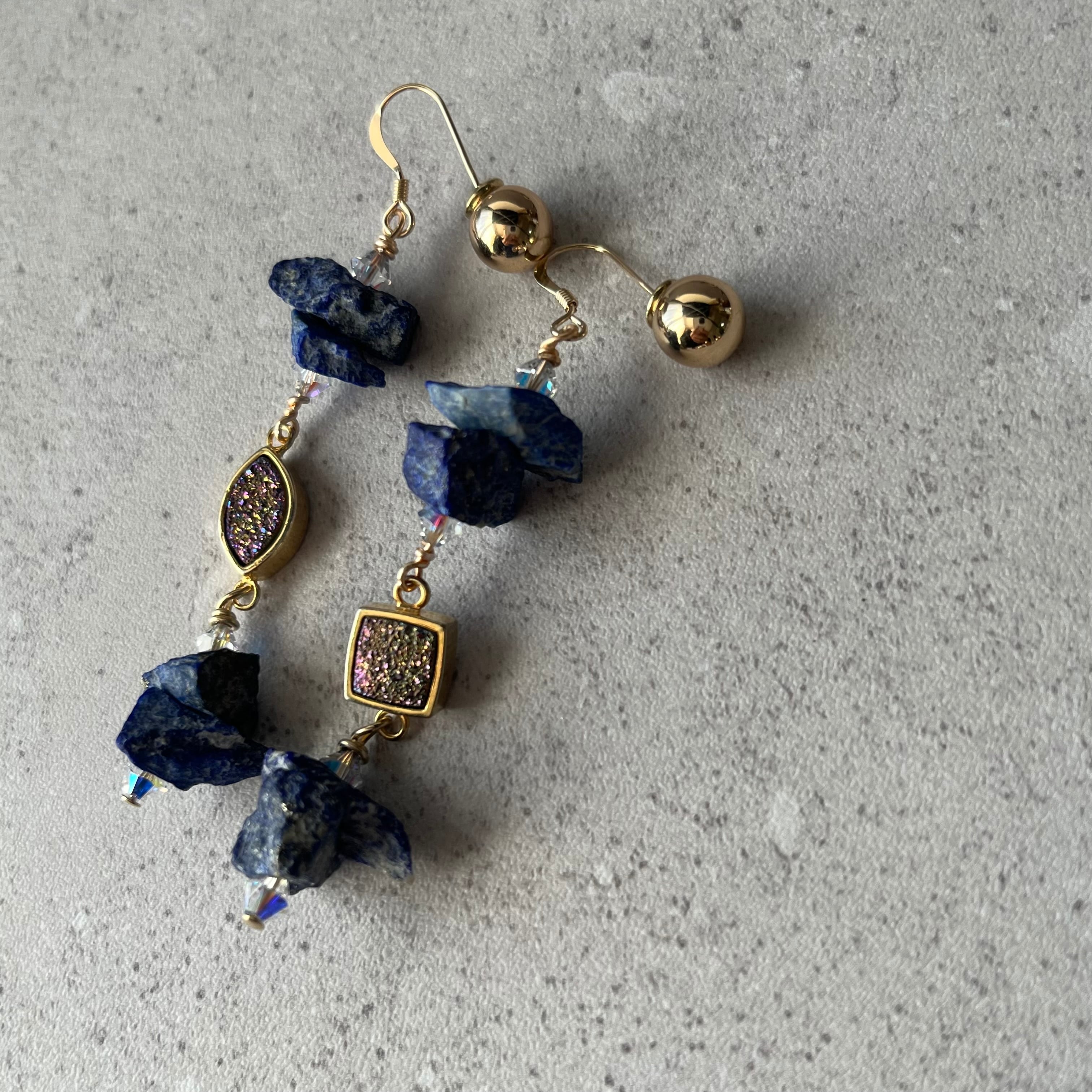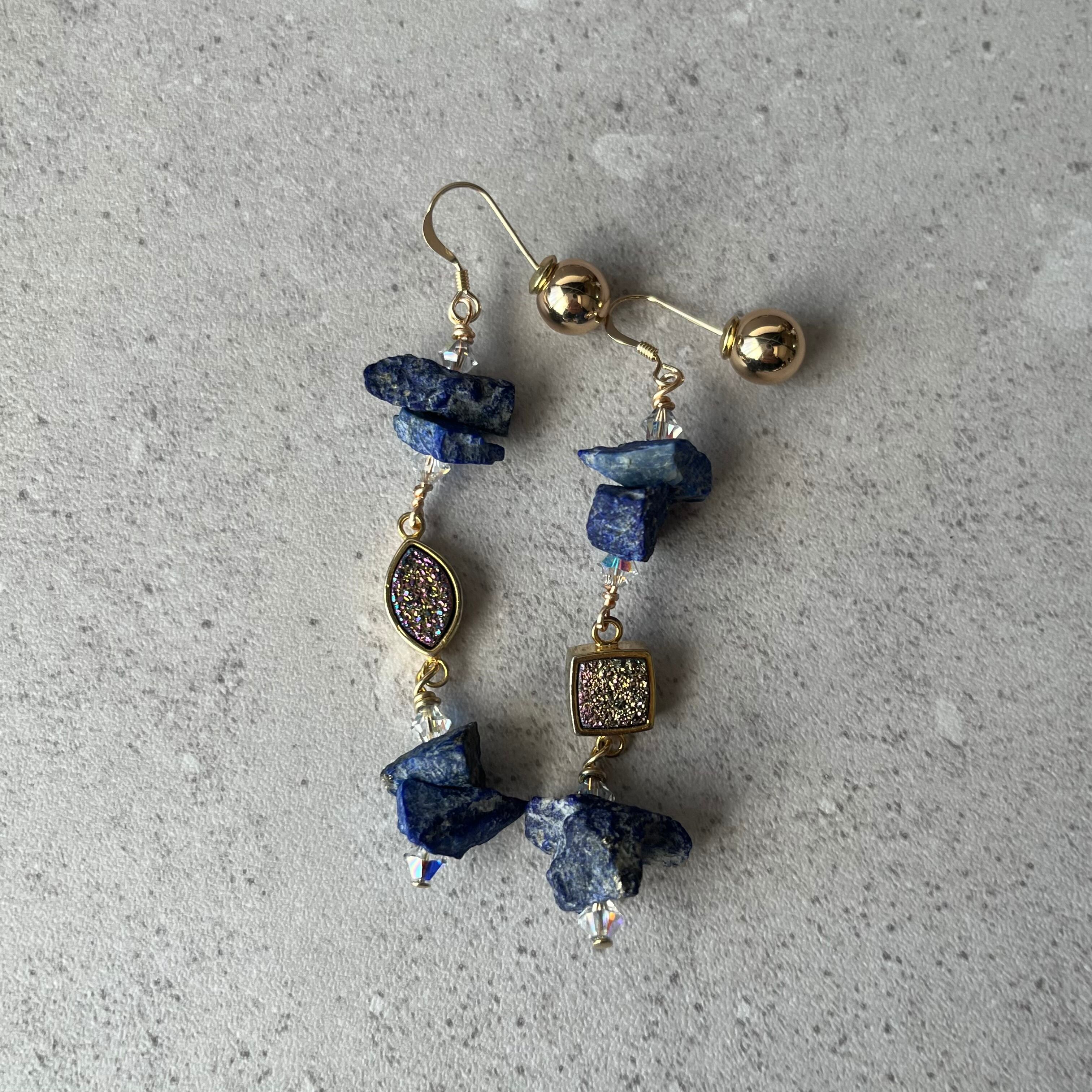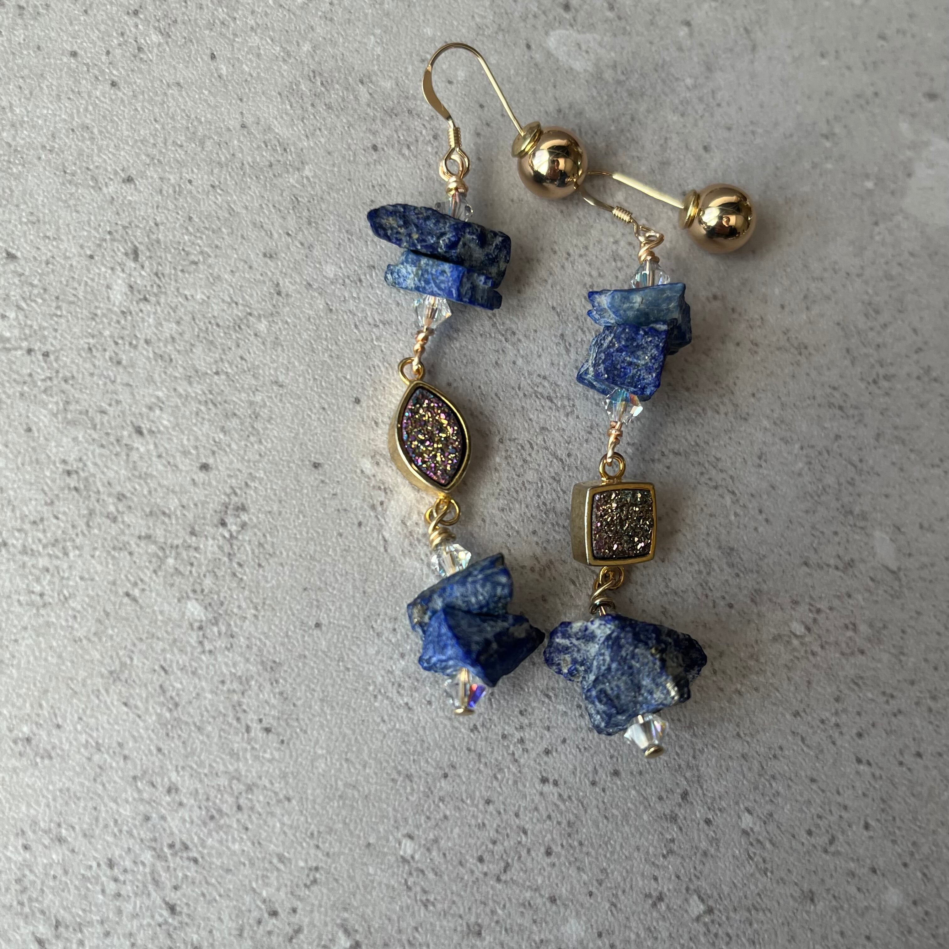 マットラピスラズリとドゥルージーのピアス(イヤリング)