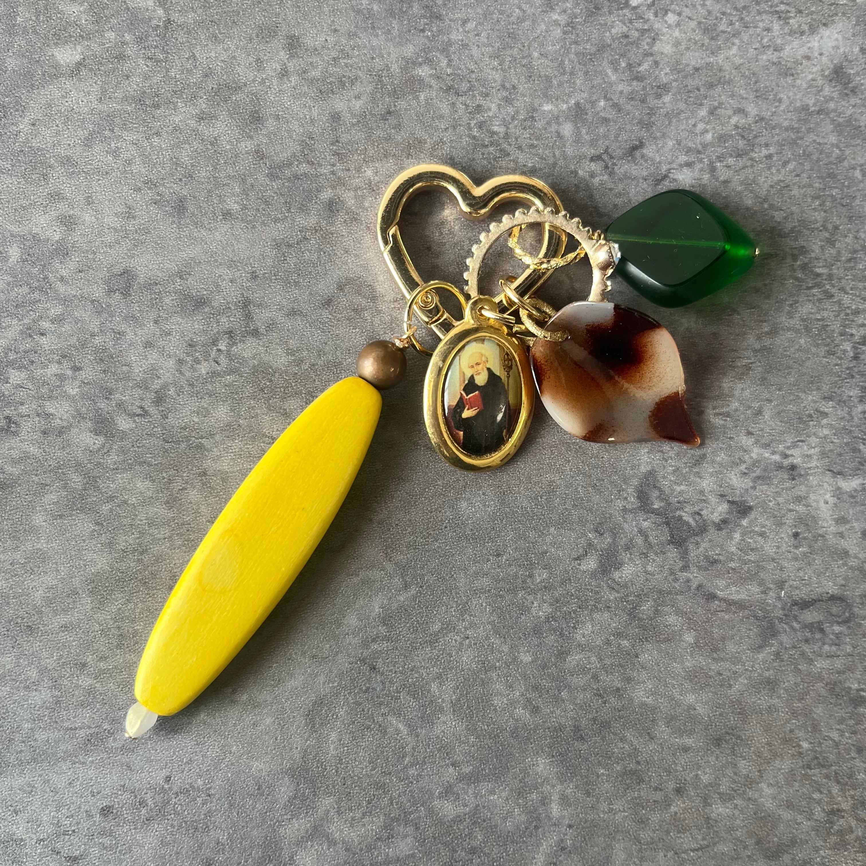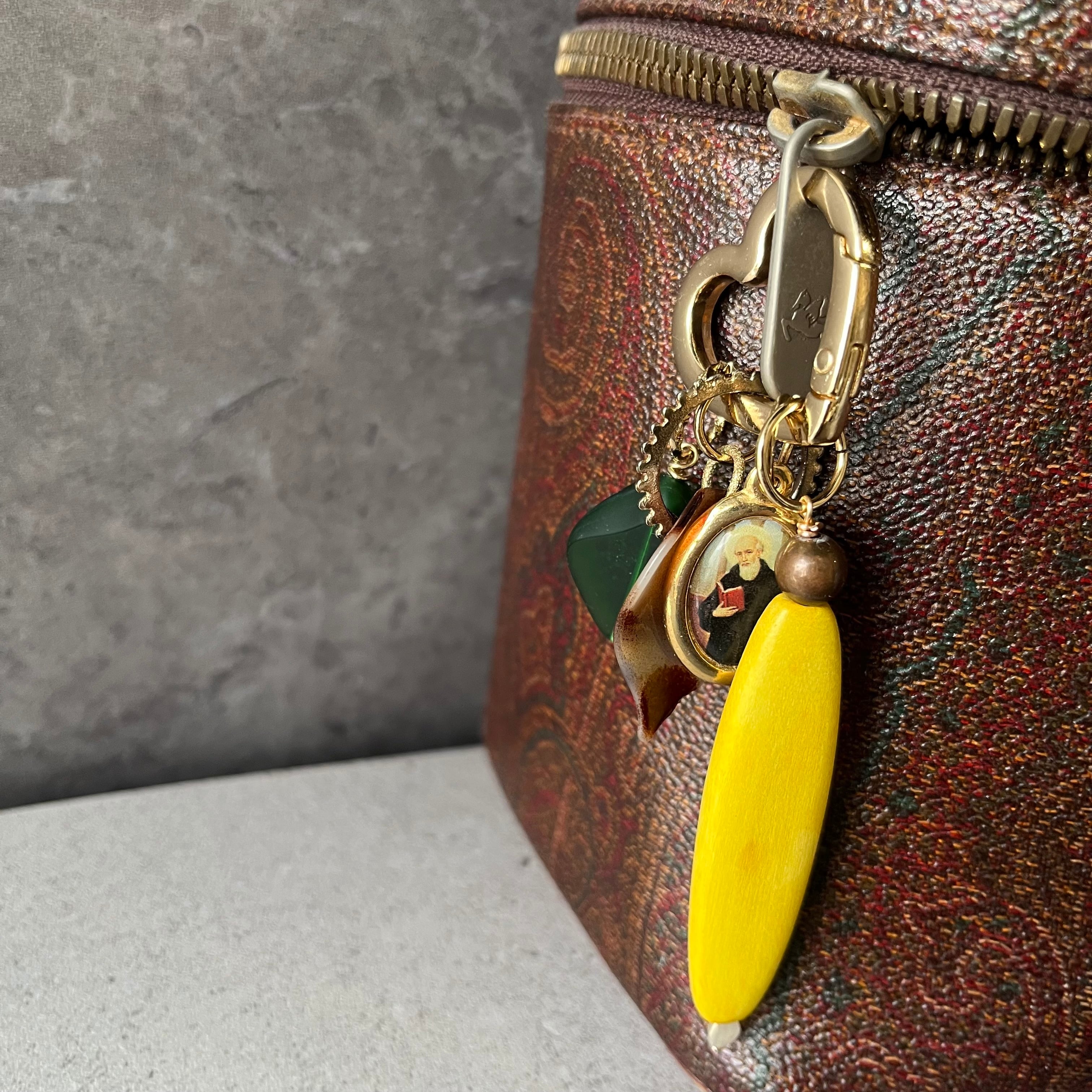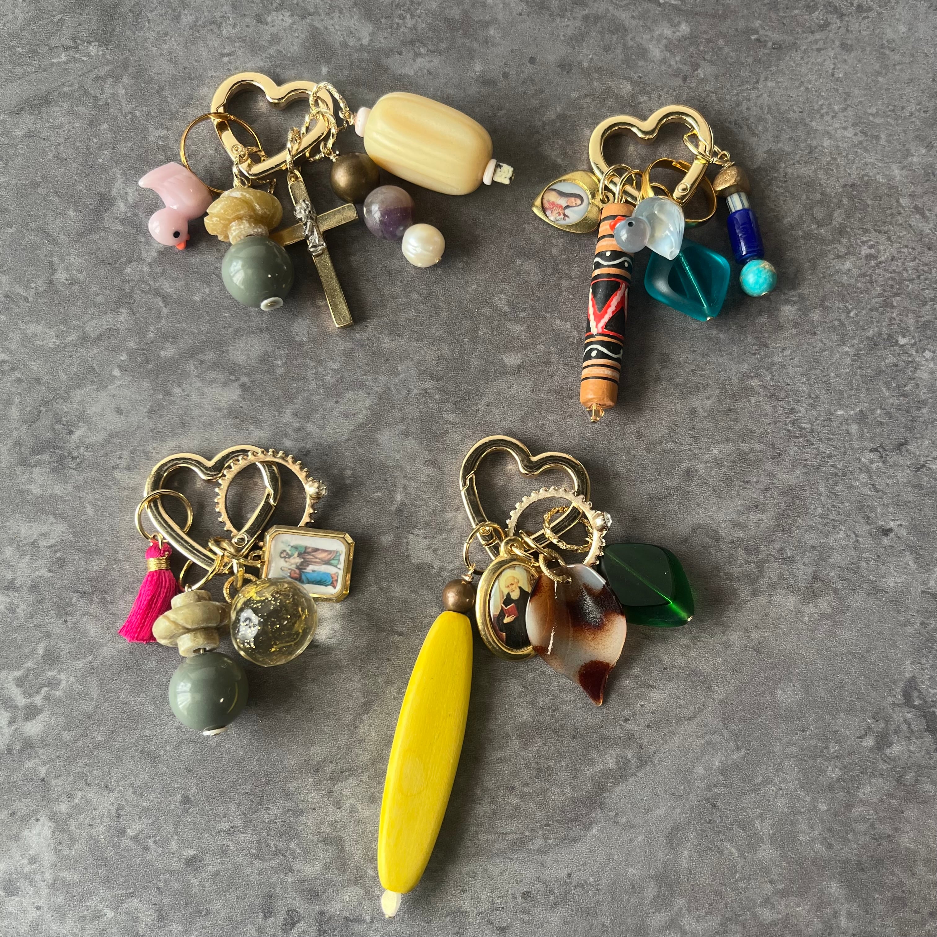 メダイをポイントにじゃらじゃらとボリューミーなバッグチャーム