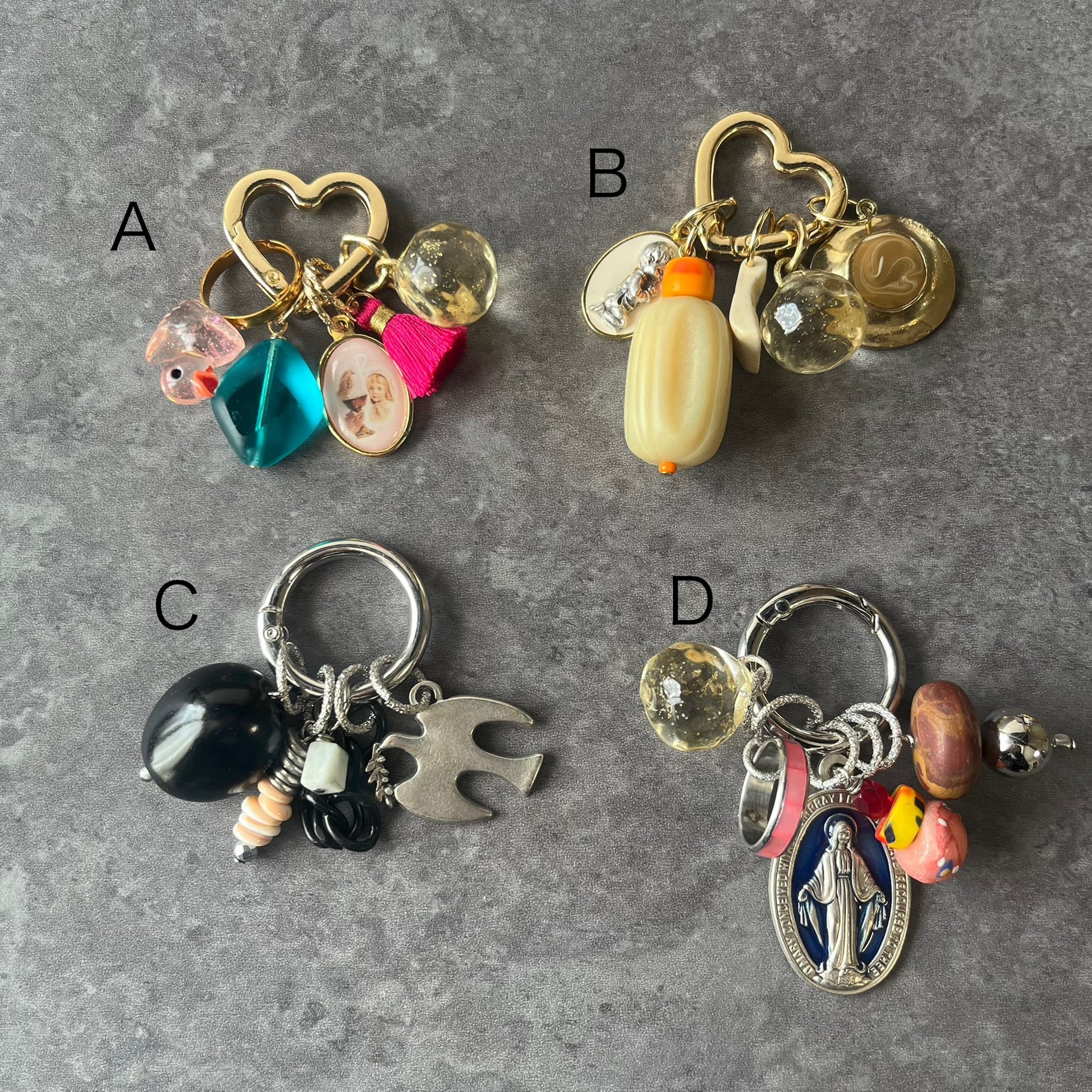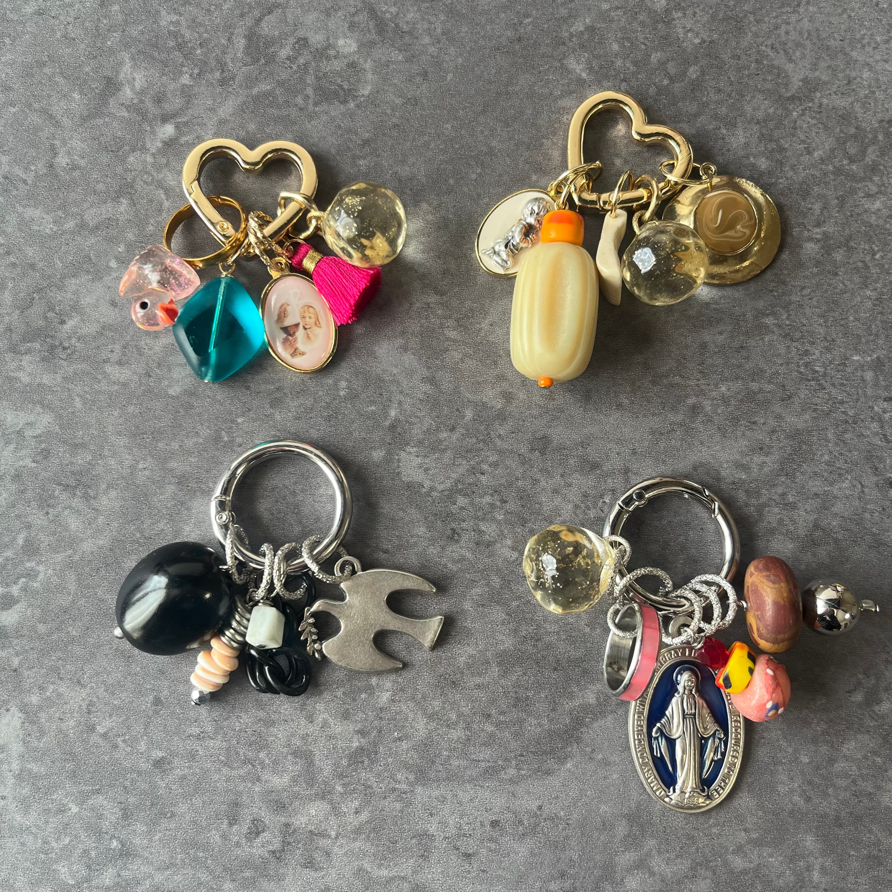 メダイをポイントにじゃらじゃらとボリューミーなバッグチャーム