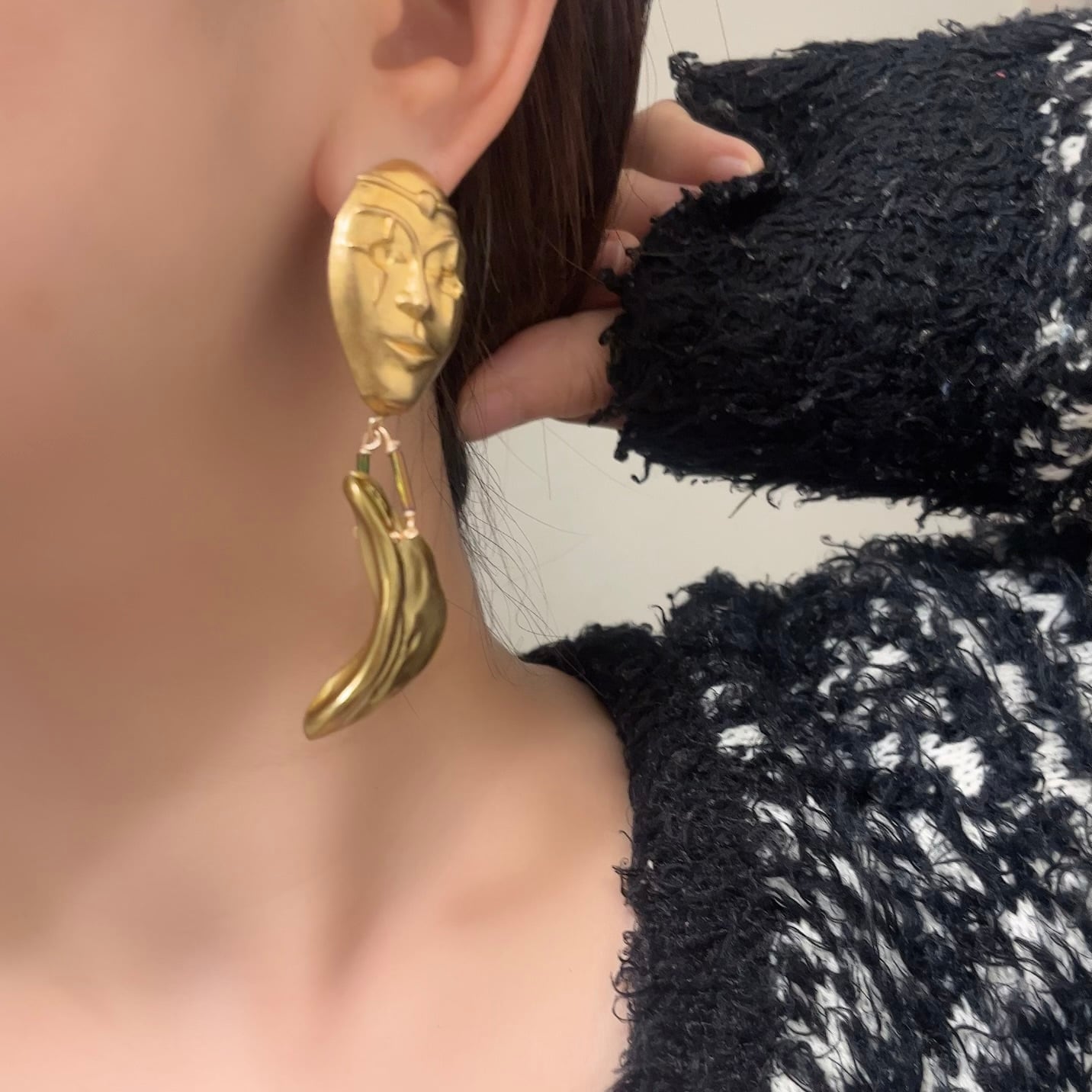 ゆらゆらぶら下がった素材はシェルに真鍮カラーのメッキをした素材。