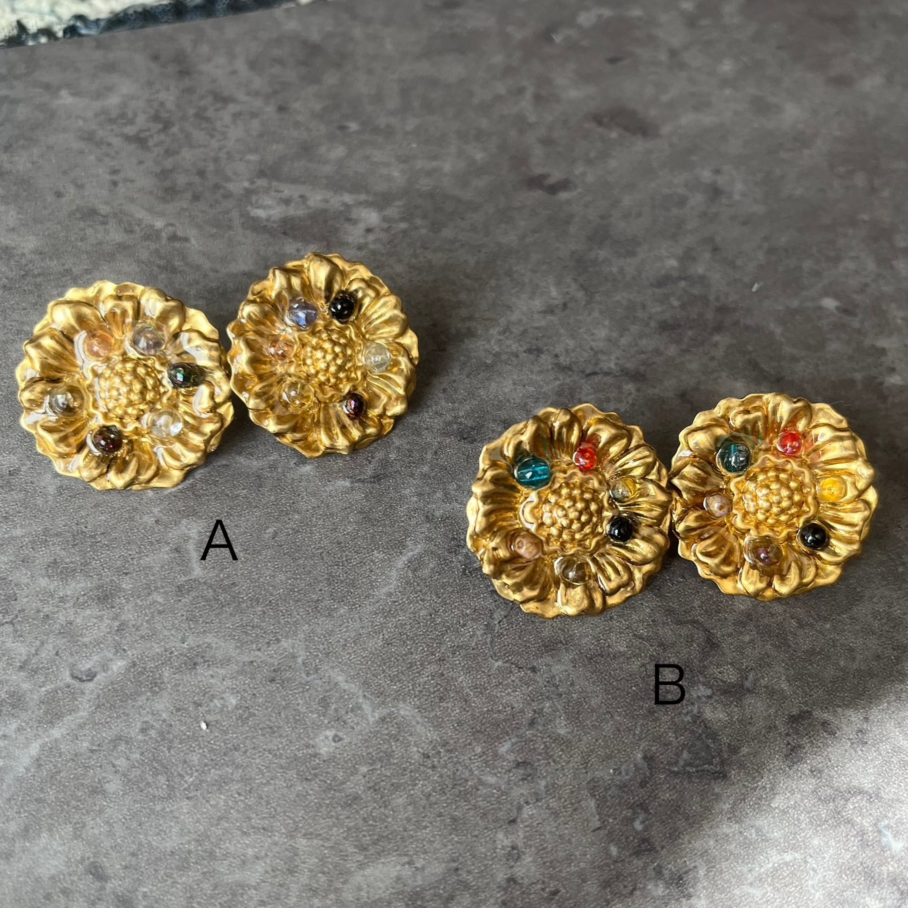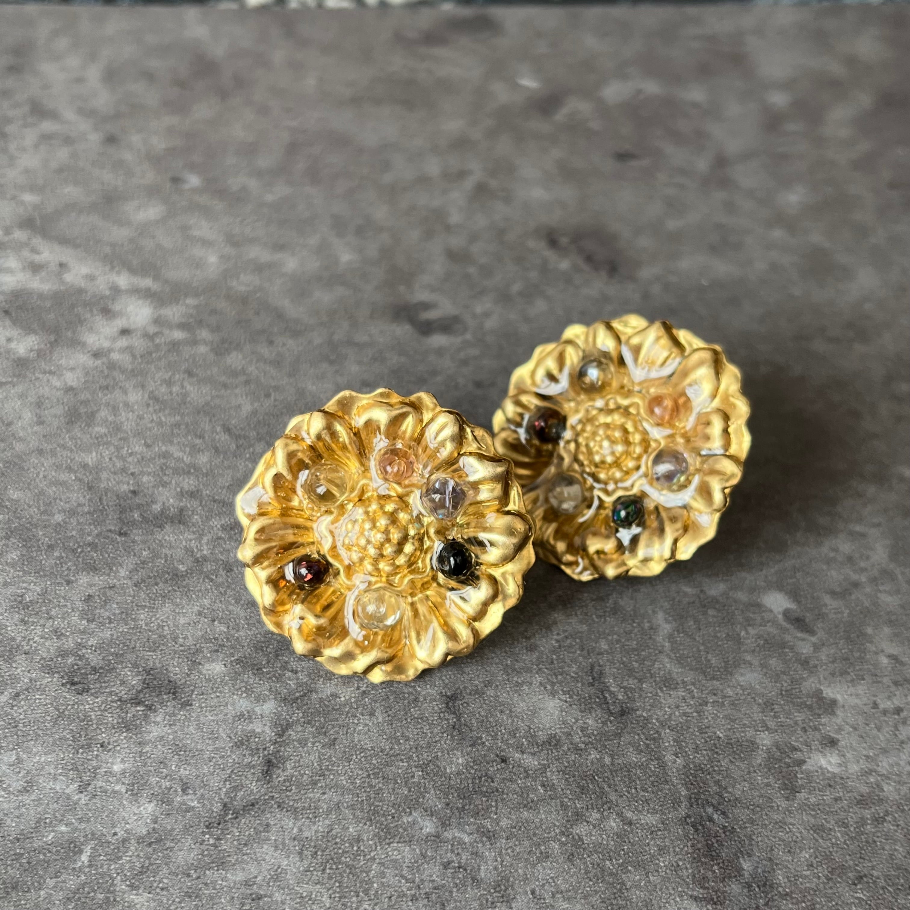 真鍮のジュエルドロワーピアス(ミニフラワー)