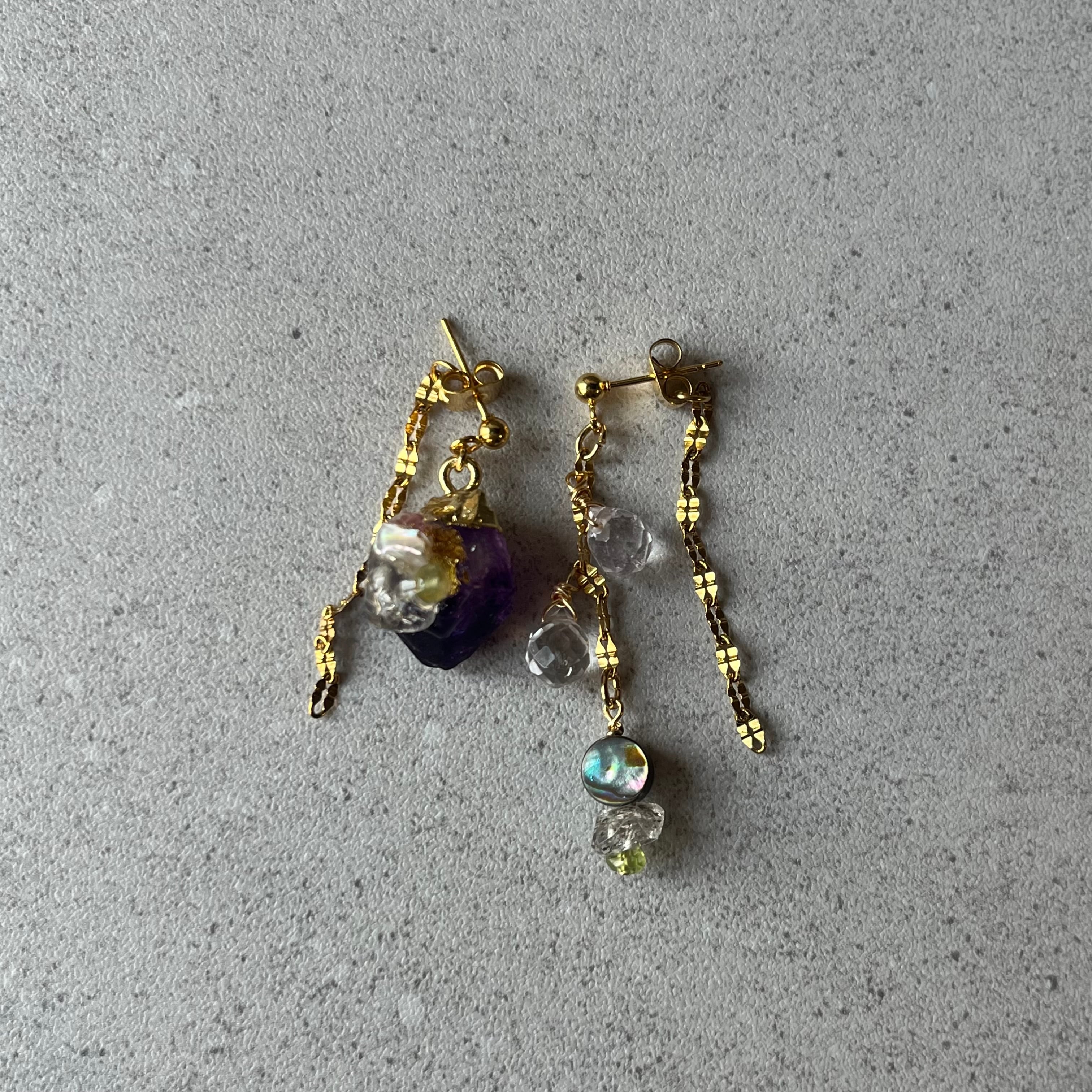 アメジストのアシンメトリーピアス(イヤリング)