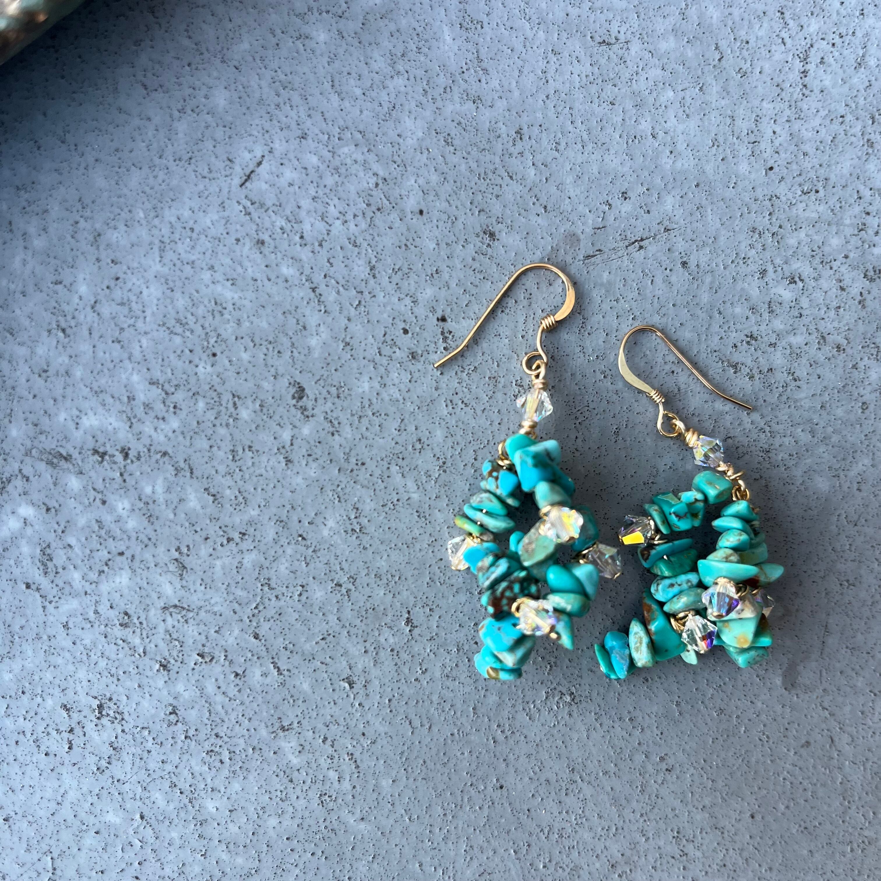 天然石ターコイズとスワロフスキーを使ってボリュームのあるデザインに仕上げました。