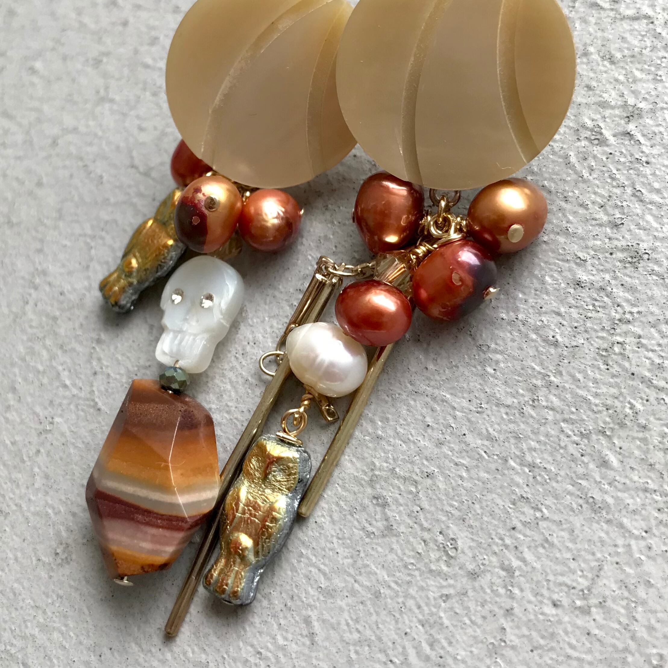ブラウンカラーの淡水パールのアフロヘアのドクロちゃんや、メタリックカラーがかわいいフクロウちゃんの個性派デザイン。