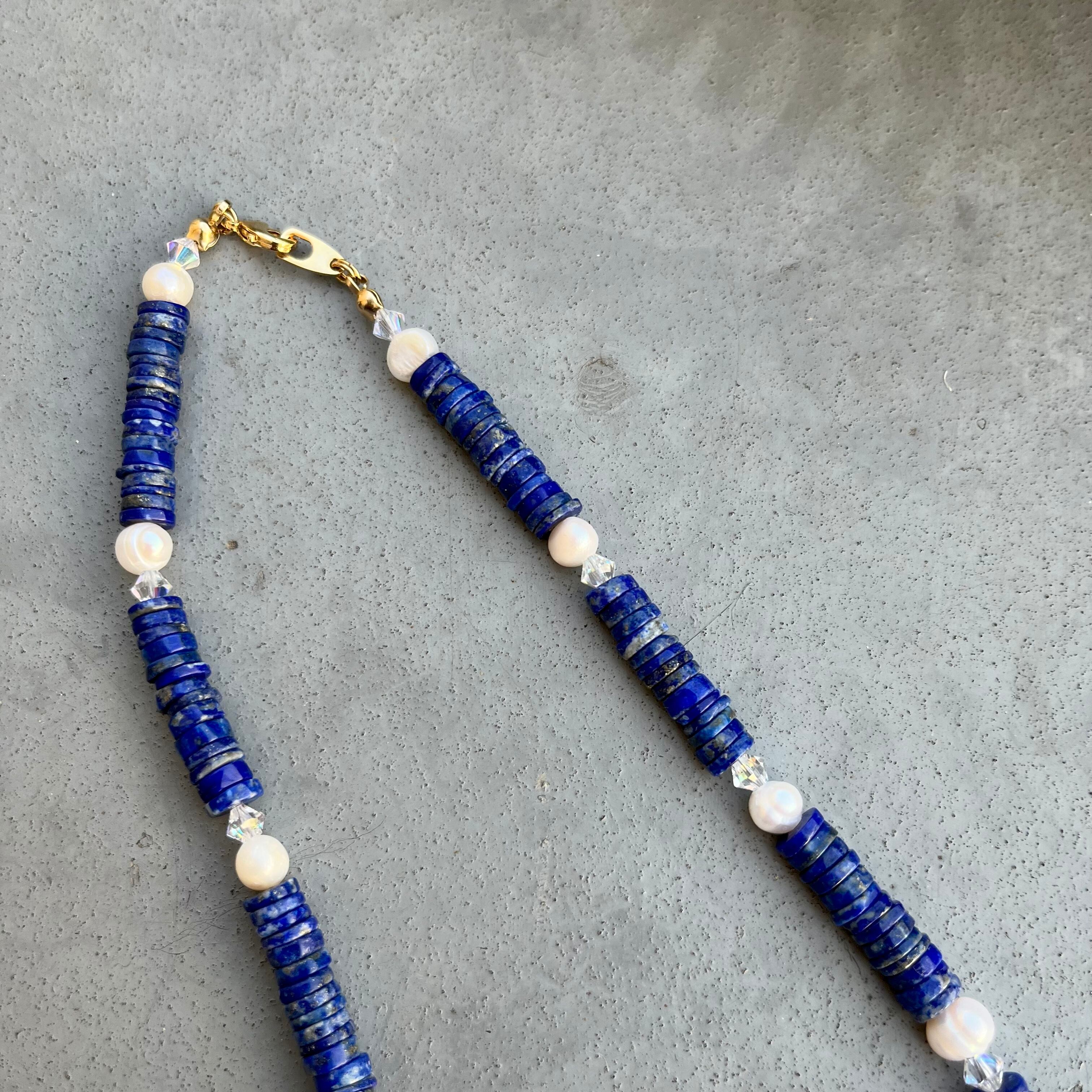 ラピスラズリとパール、スワロフスキーを組み合わせたネックレス