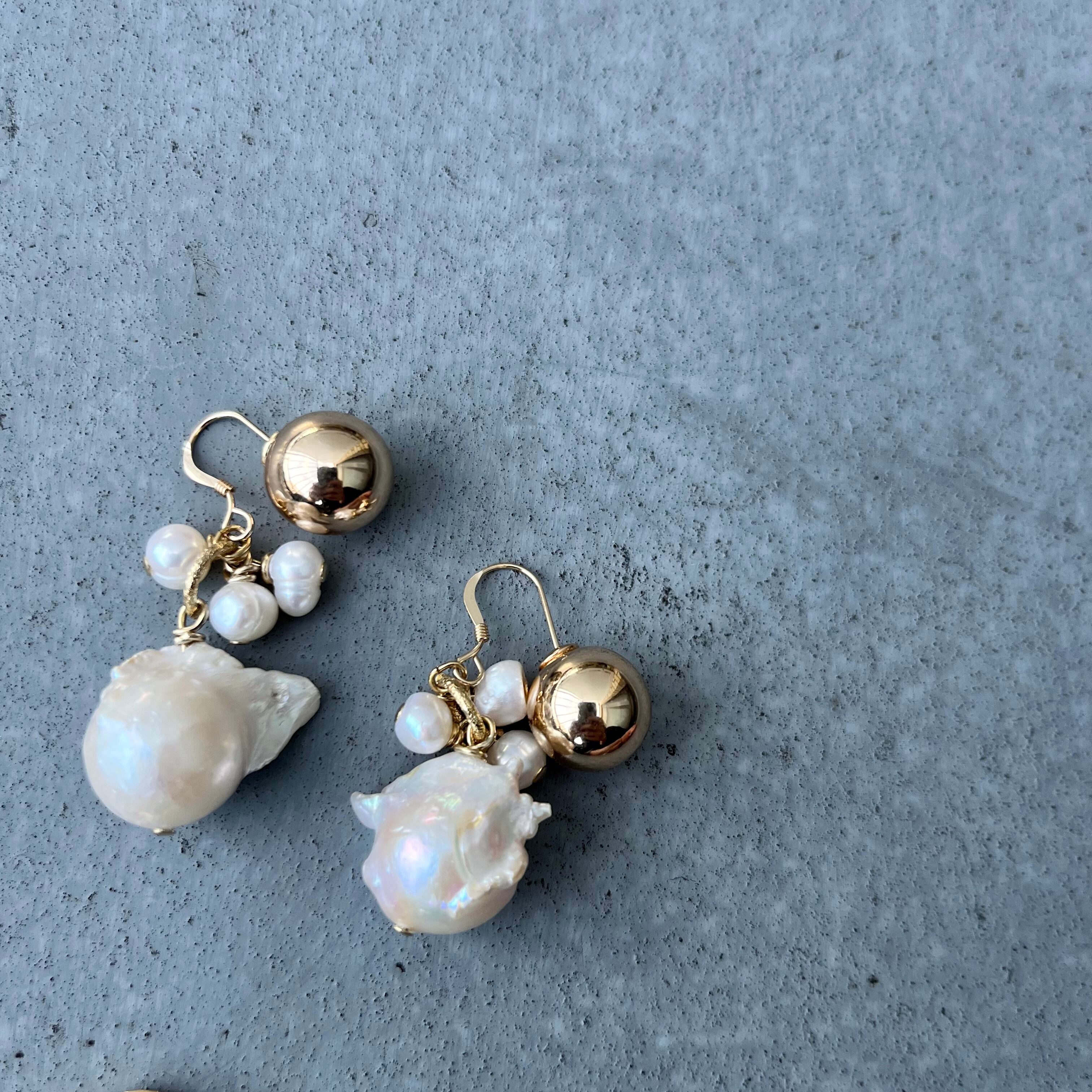 大粒バロックパールの淡水パールのボリュームピアス(イヤリング)