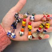 ヴィンテージガラスビーズやアンティークビーズなどを組み合わせたエキゾチックなデザインピアス