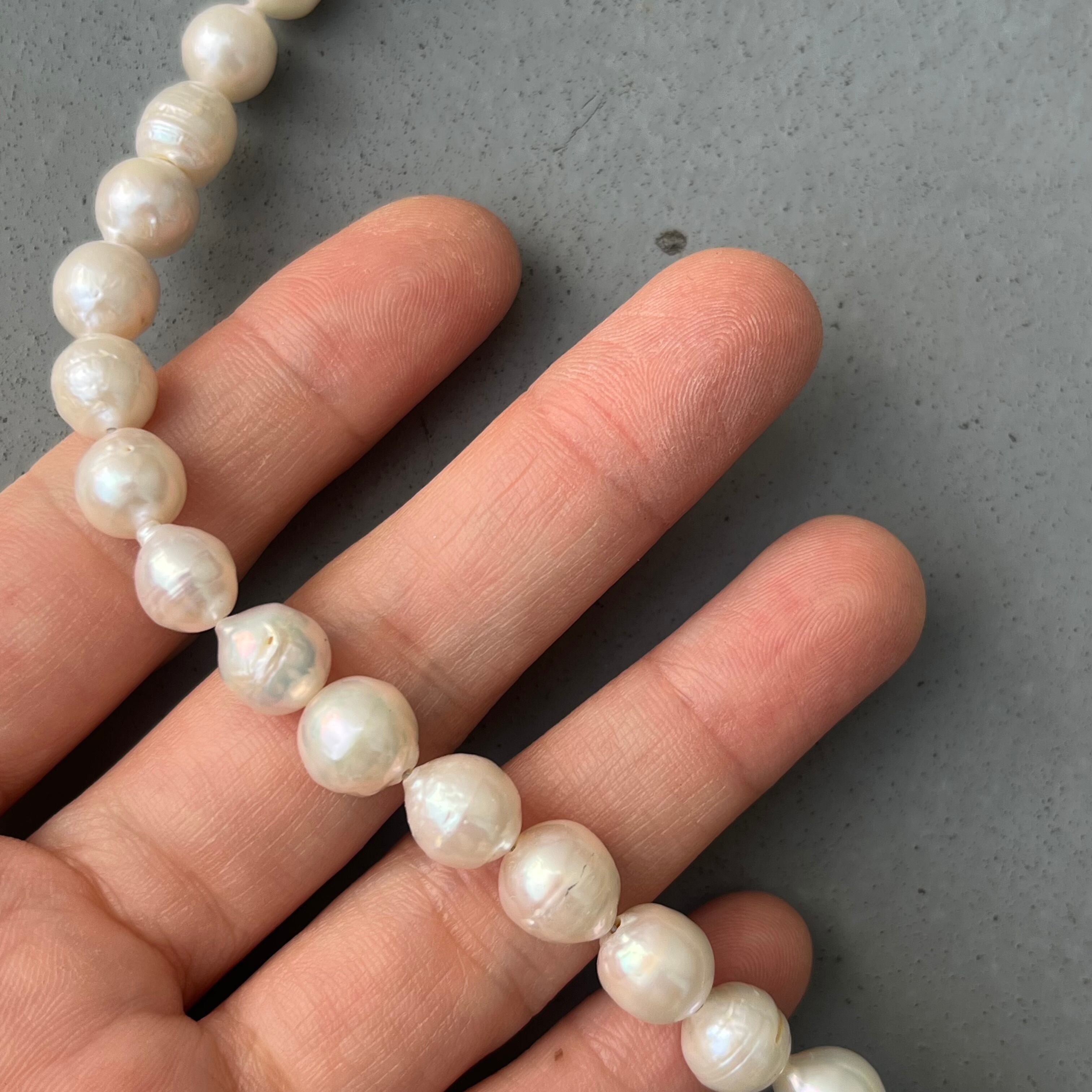美しい表情を見せるアコヤ真珠を贅沢に使ったネックレス。アクセントにコイン型の淡水パールのチャームを付けたデザインに仕上げました。