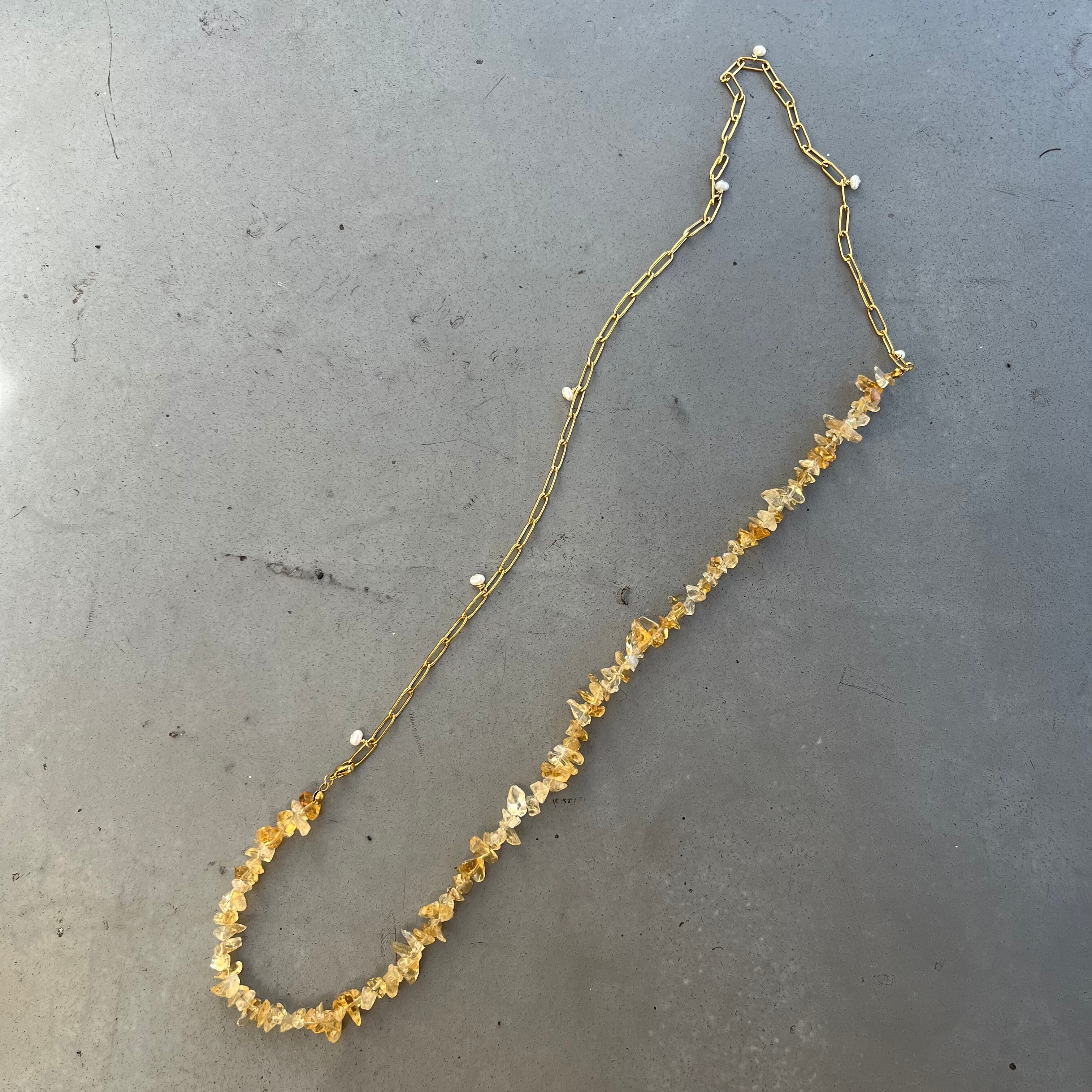 シトリンと淡水パールと、チェーンを組み合わせた3wayネックレス。