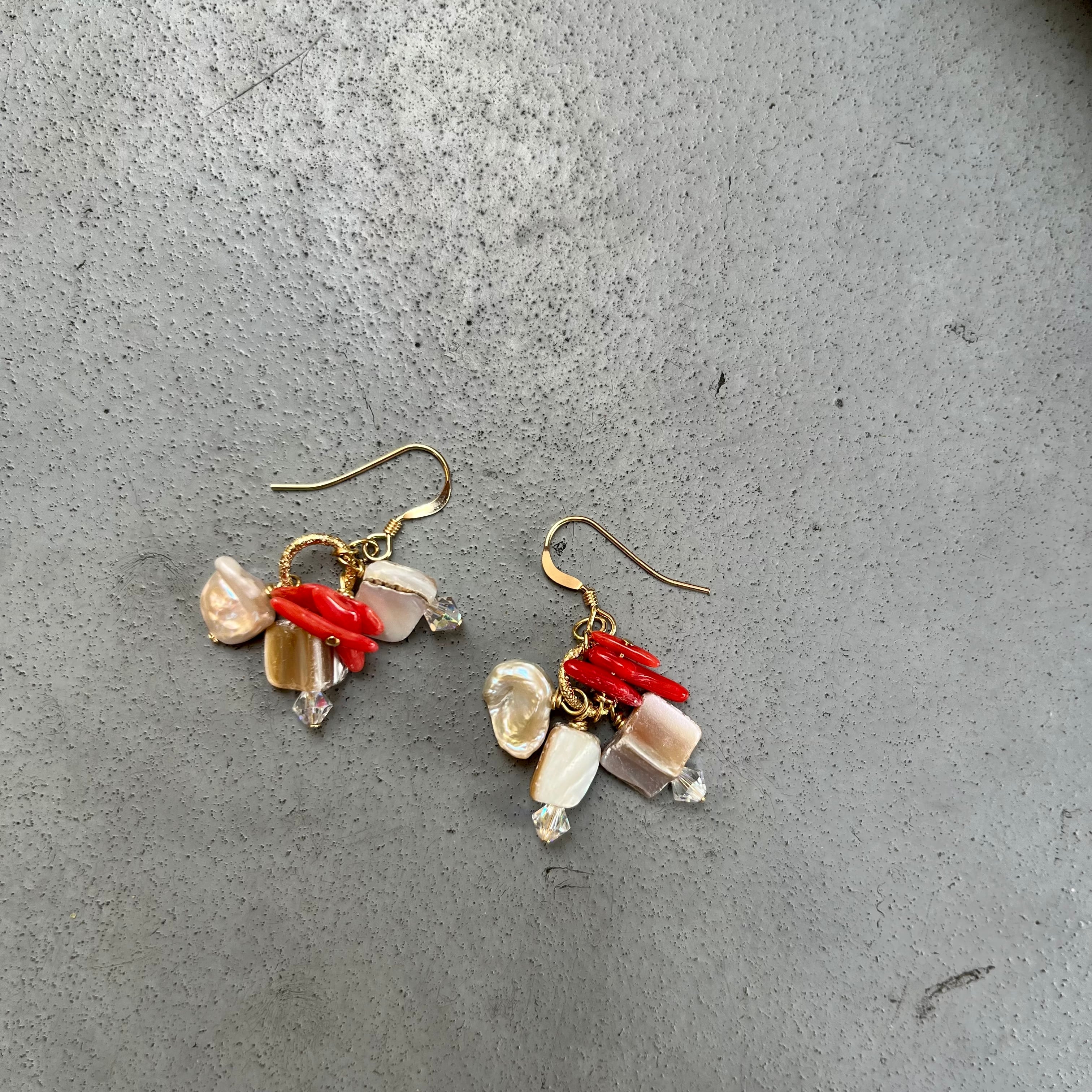 サンゴとシェルとパールのピアス(イヤリング)