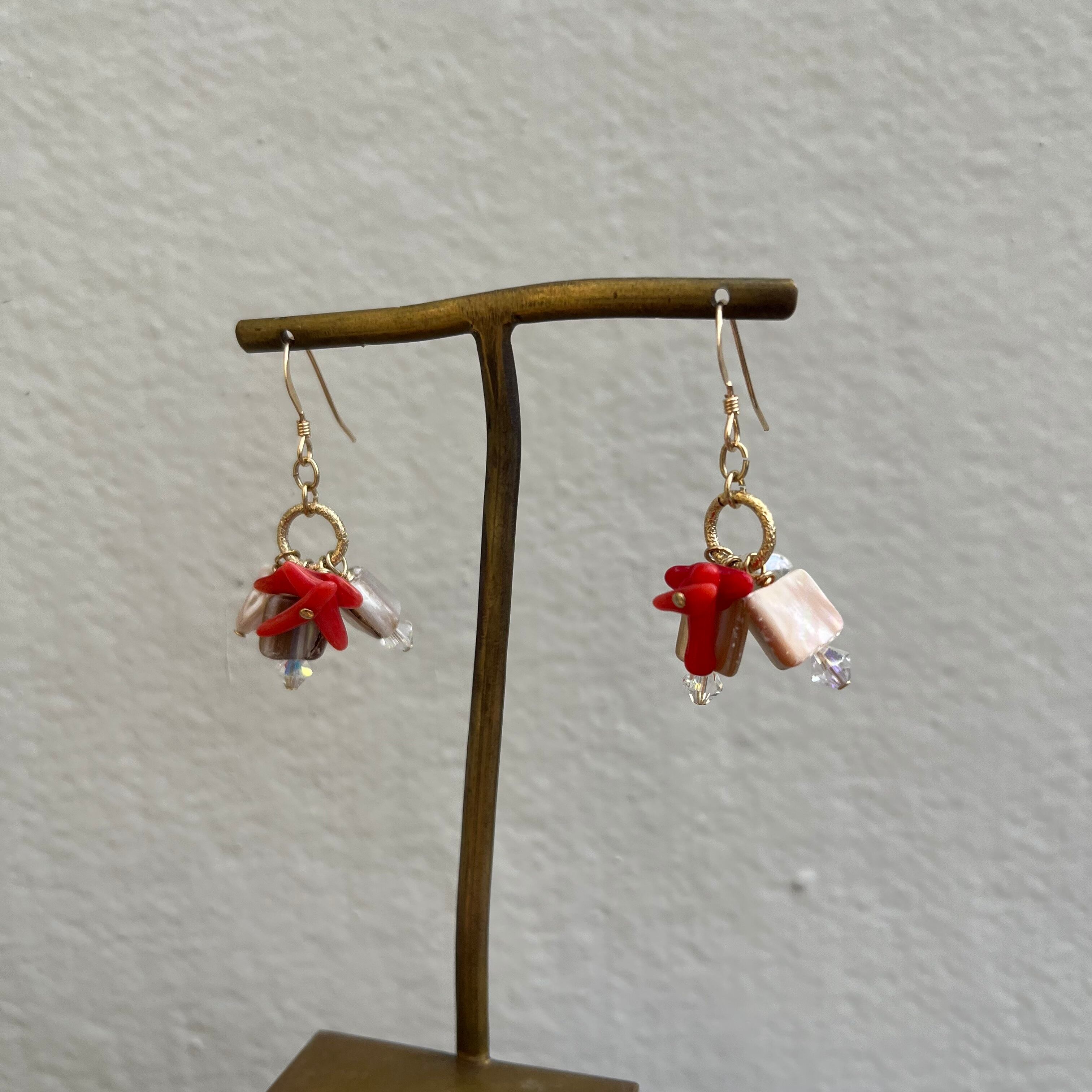 サンゴやシェル、ケシパールを常も使ったアイテム。小さいながらもボリュームのあるデザインが魅力。