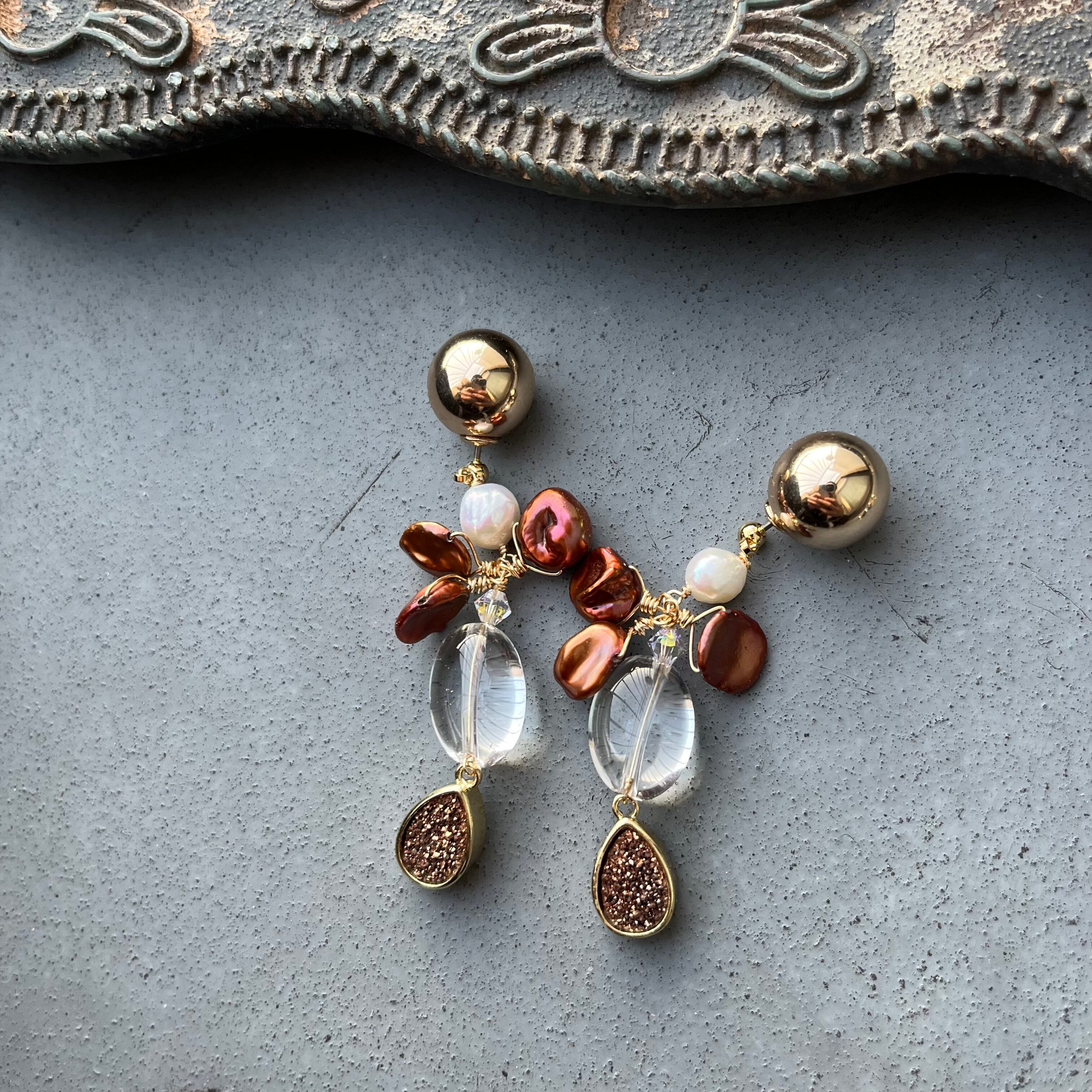ドゥルージーや水晶、ブラウンのケシパールなどを組み合わせたアイテム。