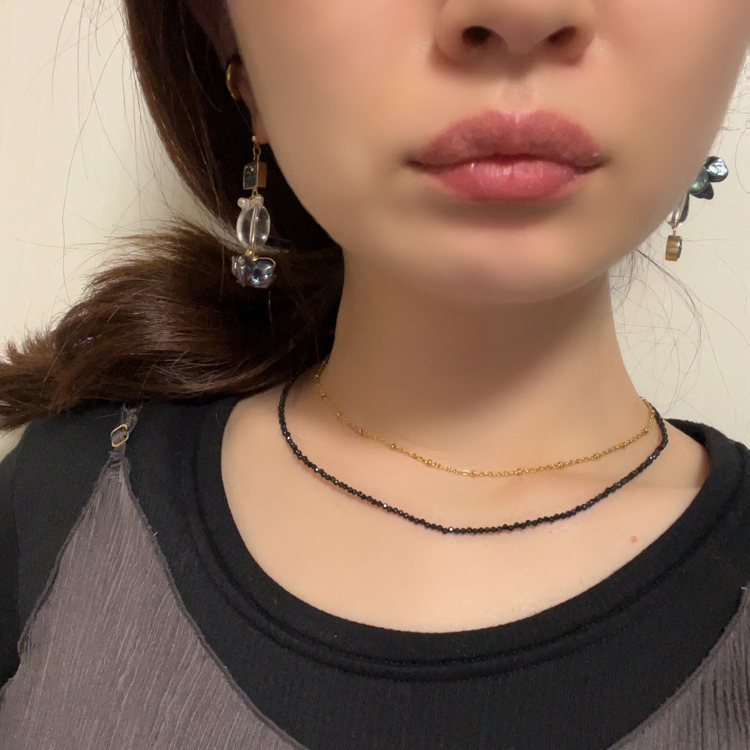 ブラックスピネとデザインチェーンを使ったシンプルなネックレス